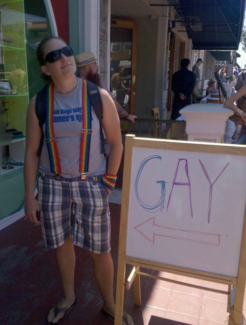 I was going to try to stay away from the topic of sexual orientation for a while so as not to alienate my hordes of straight readers, but I am sitting in a coffee shop in the San Diego gayborhood watching a happy crowd of triumphant homos, and as is the case with my gayness itself, I simply can’t help myself.  This impromptu pride parade is in celebration of today’s court decision to overturn Prop 8, a measure that reaffirmed the proper definition of marriage for these pesky California queers back in 2008.  From what I can remember, the definition goes something like, “Marriage, queers, is between a man and a woman, even if they are considerably less compatible and attractive than you and your same-sex partner. ”